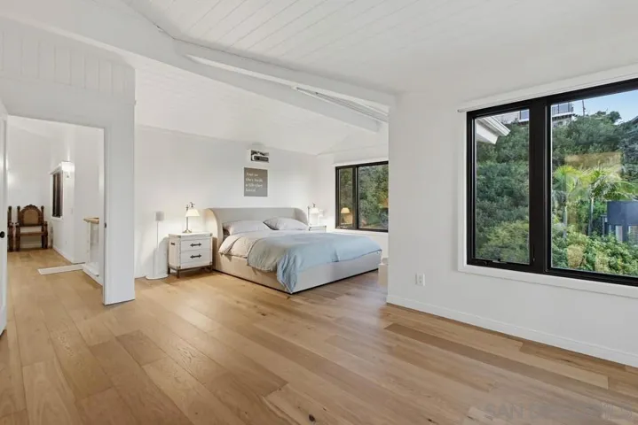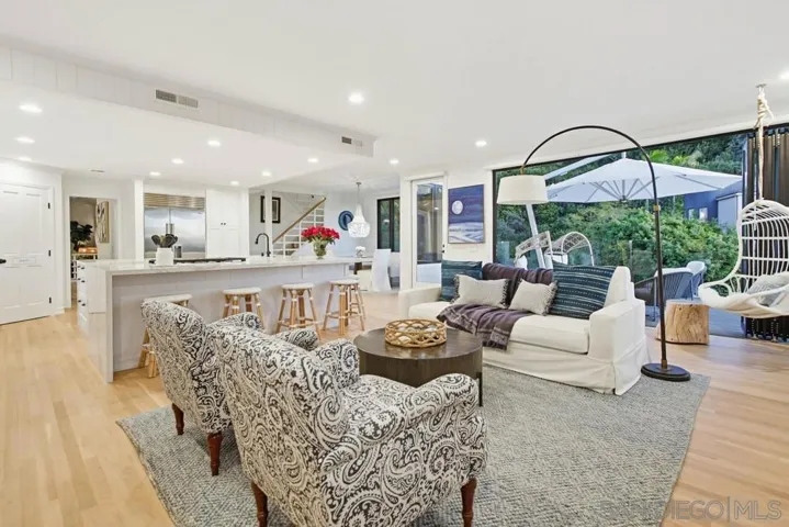 Modern aesthetics fuse with timeless charm in this gorgeous turn-key four bedroom, three and a half bath home offering 3,379 square feet of light-filled spaces. From the moment you step inside, discover privacy and coastal luxury in this stunning ocean view home. The spacious layout features both formal and informal living spaces with soaring ceilings, elegant finishes throughout and an open-concept layout perfect for both everyday living plus entertaining family and friends. The multiple outdoor living areas invite year-round enjoyment of our idyllic climate. Centrally located at the heart of the home, the chef’s kitchen seamlessly brings together charming informal dining, plentiful island seating and a spacious family room that creates an ideal gathering space for all. Retreat to the spacious primary suite with a spa-inspired bath, large walk-in closet and an expansive deck that is both private and perfectly positioned to appreciate the canyon and adjacent acreage of open space. Additional updated features include fully-owned 20 panel solar array plus battery backup system, newer roof, decks, siding and multi-zoned HVAC systems. Located in the highly sought-after neighborhood of Upper Hermosa and just blocks away from Bird Rock’s vibrant local restaurants, boutique shopping, and the beach, this home offers the ultimate Southern California lifestyle in one of La Jolla’s most cherished neighborhoods.