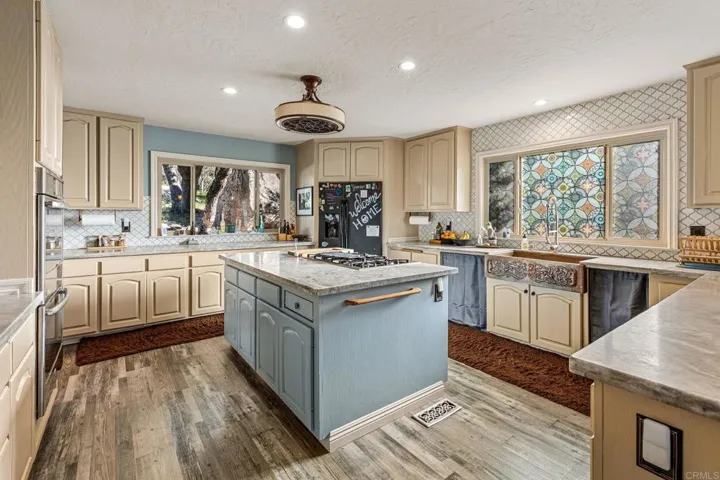 Wake up to the quiet beauty of the Laguna Mountains. Enjoy a cup of coffee on one of the many decks of this expansive, two-story custom-built home. A mature oak tree weaves through the front deck, perfectly blending nature and structure. Light pours through the large windows of this 3,784 sqft floorplan. There are three sizable bedrooms, all with en-suite bathrooms. For convenience, the primary suite is located on the entry level next to an optional 4th bedroom or office. The formal living space features soaring open-beam ceilings and elegant built-ins surrounding the brick fireplace, while the family room offers the cozy warmth of a wood-burning stove. The large kitchen opens directly to the family room and connects to a formal dining space complete with a generous pantry. Step outside to find a peaceful sanctuary; the backyard is fully fenced and features two ponds, one of which is home to many beautiful Japanese Koi fish which are included with the home. Other notable features include a spacious 2-car garage, a separate indoor laundry room conveniently located by a ½ bathroom, a water filtration system, new flooring, and a fresh coat of paint. You can move in with peace of mind knowing there is newly wired electrical throughout. Pine Valley offers direct access to Mother Nature—a place where time slows down, wild turkeys roam, and kids still play outside. Don’t wait on this one. Come fall in love today!
