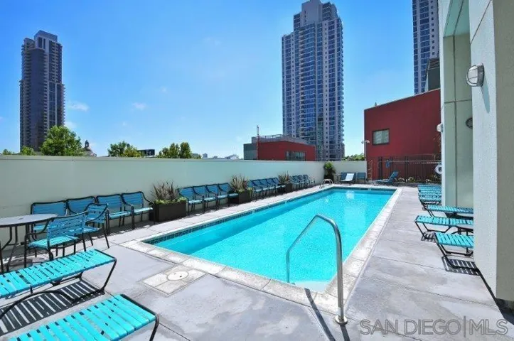 Treo | Little Italy/Columbia District Live at the heart of one of San Diego’s most sought-after neighborhoods. This Treo condo perfectly balances vibrant city energy with a peaceful retreat you’ll love coming home to — making it just as ideal for working from home as it is for enjoying everything Little Italy has to offer. Step outside to world-class restaurants, charming coffee houses, and the scenic San Diego waterfront, all within easy reach. San Diego International Airport, Downtown, Balboa Park, and the San Diego Zoo are minutes away, making this location as practical as it is enviable. Inside the building, resort-style amenities await: a sun-drenched pool and spa, fully equipped gym, BBQ areas, conference and community room, and 24-hour concierge and security. Your unit includes in-unit washer/dryer, a gas range, and secure underground parking. Unwind on your east-facing balcony and take in sweeping city views and glittering lights — a daily reminder that you’re right where you want to be.