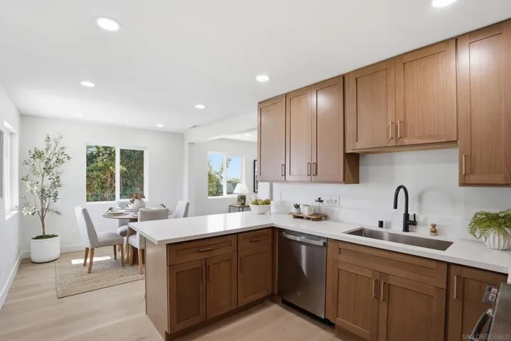 FHA and VA eligible! Perched on an elevated lot capturing refreshing breezes and sweeping 180-degree views, this beautifully renovated residence offers a rare opportunity to own a truly one-of-a-kind home. From multiple living areas, enjoy breathtaking views stretching across Downtown San Diego, the iconic Coronado Bridge, Point Loma, and even into Mexico. The home has been thoughtfully and tastefully renovated inside and out, creating a turnkey property that blends modern design with everyday comfort. Step inside to discover a bright and open living space filled with natural light, enhanced by new windows and updated flooring throughout. The fully remodeled kitchen features elegant oak cabinetry, stone countertops, stainless steel appliances, and a functional layout ideal for both daily living and entertaining. The home continues to impress with beautifully renovated bathrooms showcasing modern finishes and thoughtful design. Additional upgrades include a newer roof, new doors, updated baseboards, recessed lighting, and fresh finishes throughout, creating a truly move-in-ready experience. The exterior has been refreshed with new turf landscaping, enhancing curb appeal while providing low-maintenance outdoor space. Situated on a generous 8,300 sq ft lot zoned R-2 Minor Multiple, the property offers exceptional potential for expansion or development, allowing for two homes on the lot. Whether you’re seeking a stunning primary residence, investment opportunity, or future development potential, this property delivers.