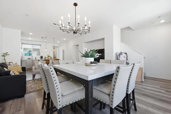Welcome to La Brisa, one of Otay Mesa’s most sought-after newer communities, built in 2022 by TRI Pointe Homes. This stylish 3-story townhome offers 3 bedrooms, 2.5 bathrooms, and 1,703 sq ft of thoughtfully designed modern living. The entry level features a versatile flex space perfect as a home office, gym, or guest area, along with direct access to your attached 2-car garage. The main living level showcases an open-concept great room with a chef-inspired kitchen featuring quartz countertops, stainless steel appliances, a large center island, and seamless flow into the dining and living areas. Upstairs, the primary suite offers a private retreat with a spa-like bathroom, while two additional bedrooms and a full bath complete the top floor. Enjoy low-maintenance living in a well-kept, VA approved community with scenic walking paths and picnic areas. Conveniently located near the 905 and 5 freeways, the Otay Ranch outlets, and the US-Mexico border crossing, ideal for commuters and those who love the energy of the South Bay.